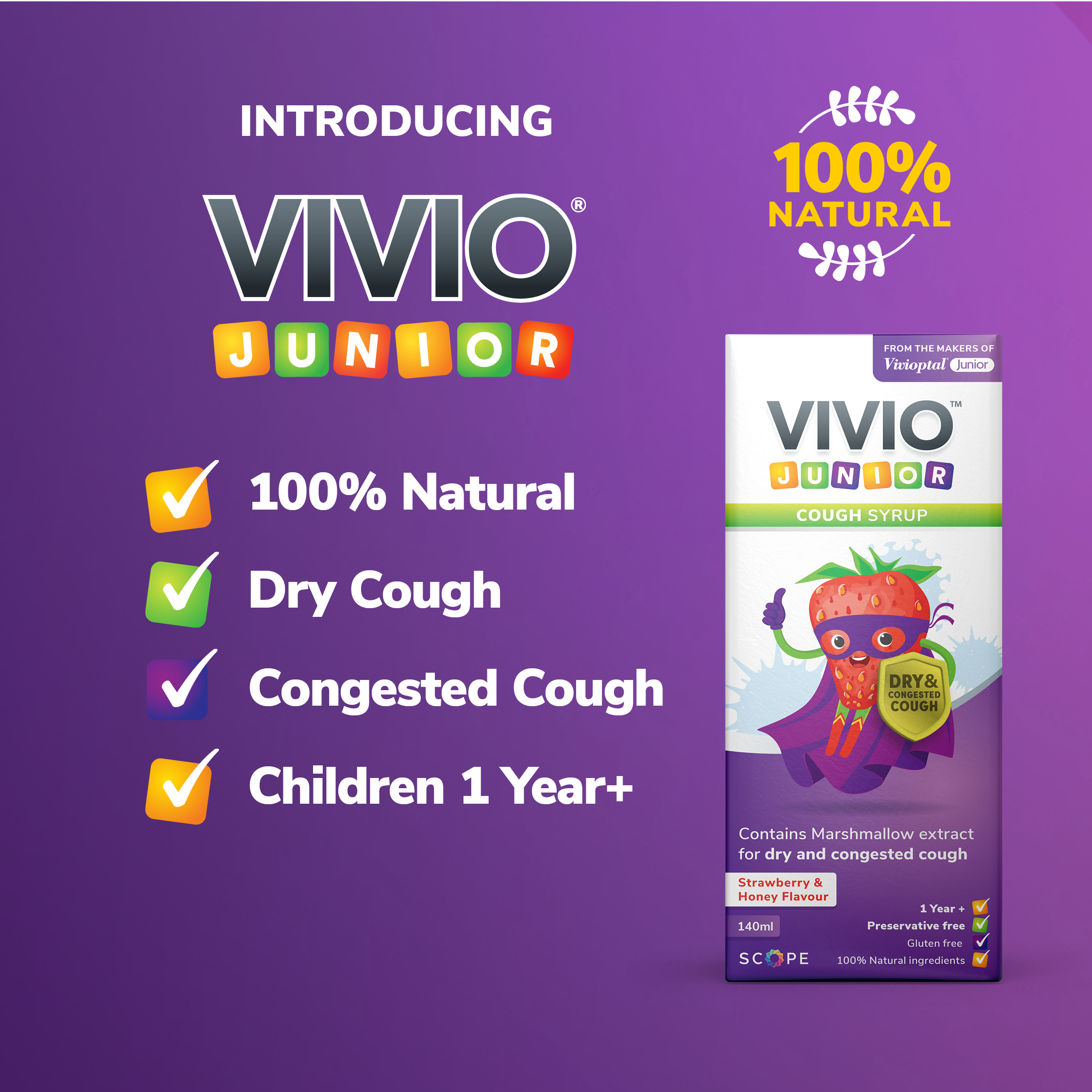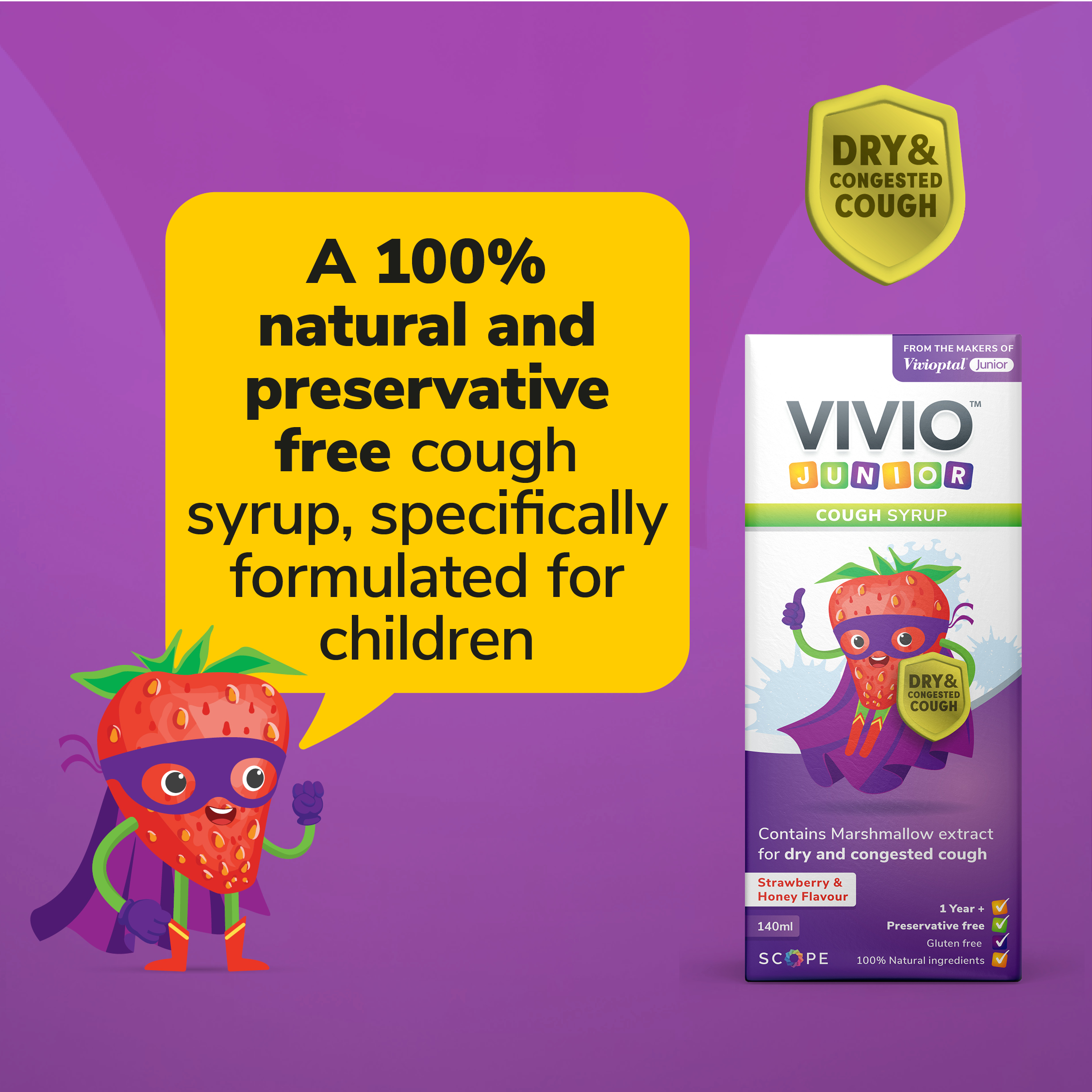 - VIVIO® Junior Cough Syrup is a 100% natural and preservative free cough syrup, specifically formulated for Children 1 year+ for dry, chesty and congested cough.