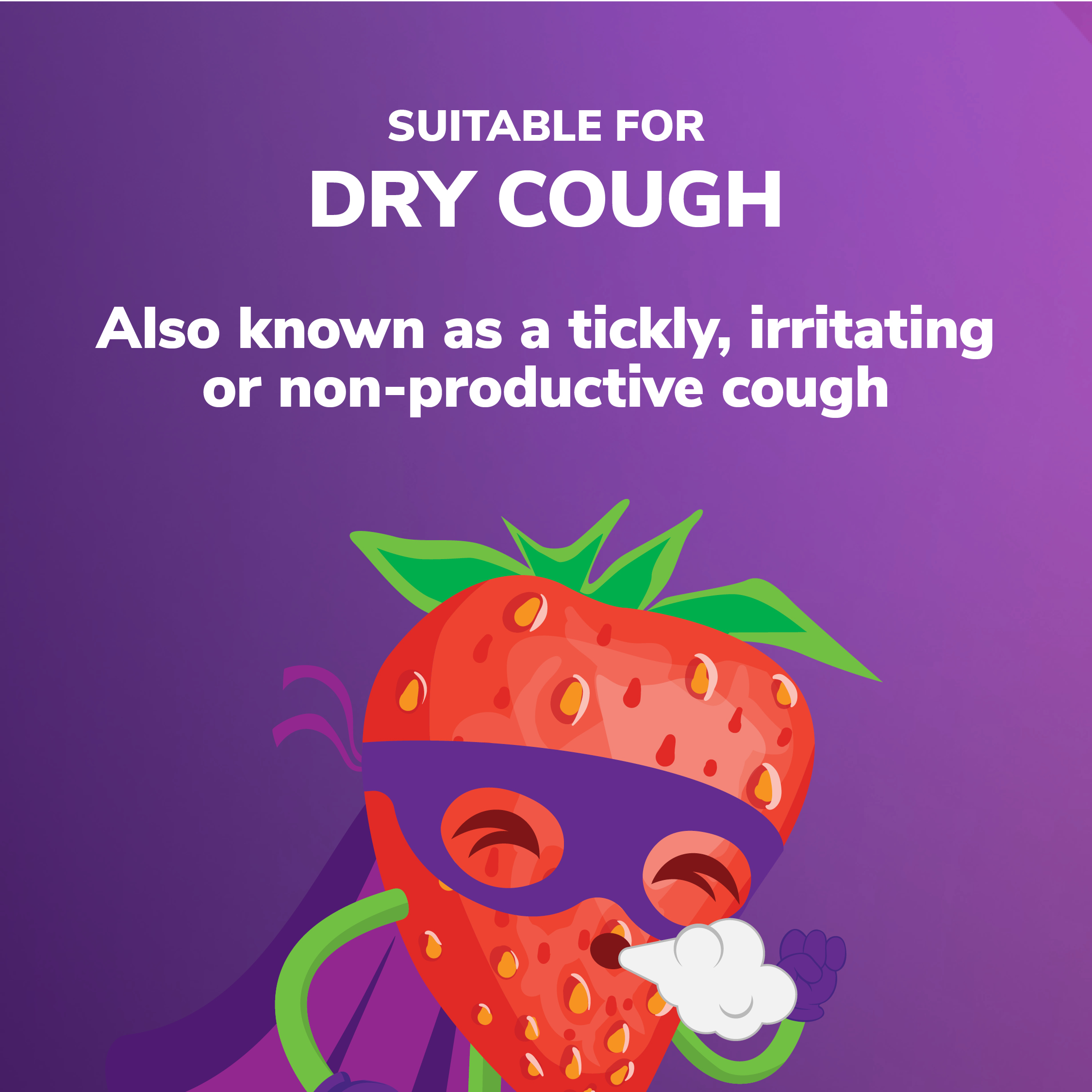 - Dry cough: VIVIO® Junior Cough Syrup forms a protective film on the throat, thanks to the xanthan gum and arabic gum action, which protect the throat from the contact of irritant or infectious agents, relieving its irritation and keeping it hydrated and lubricated.
